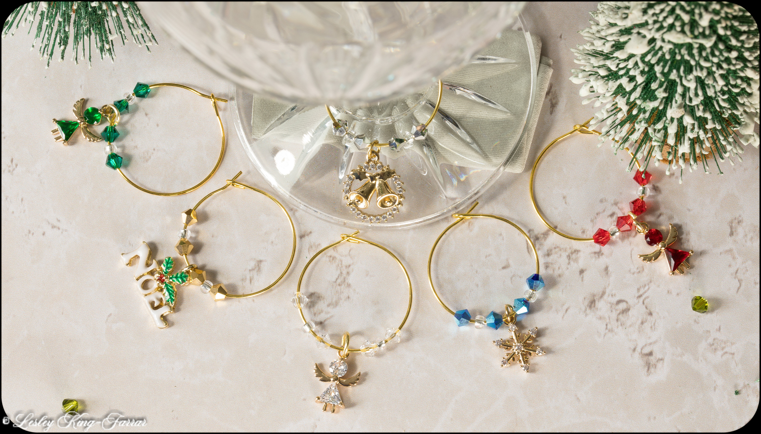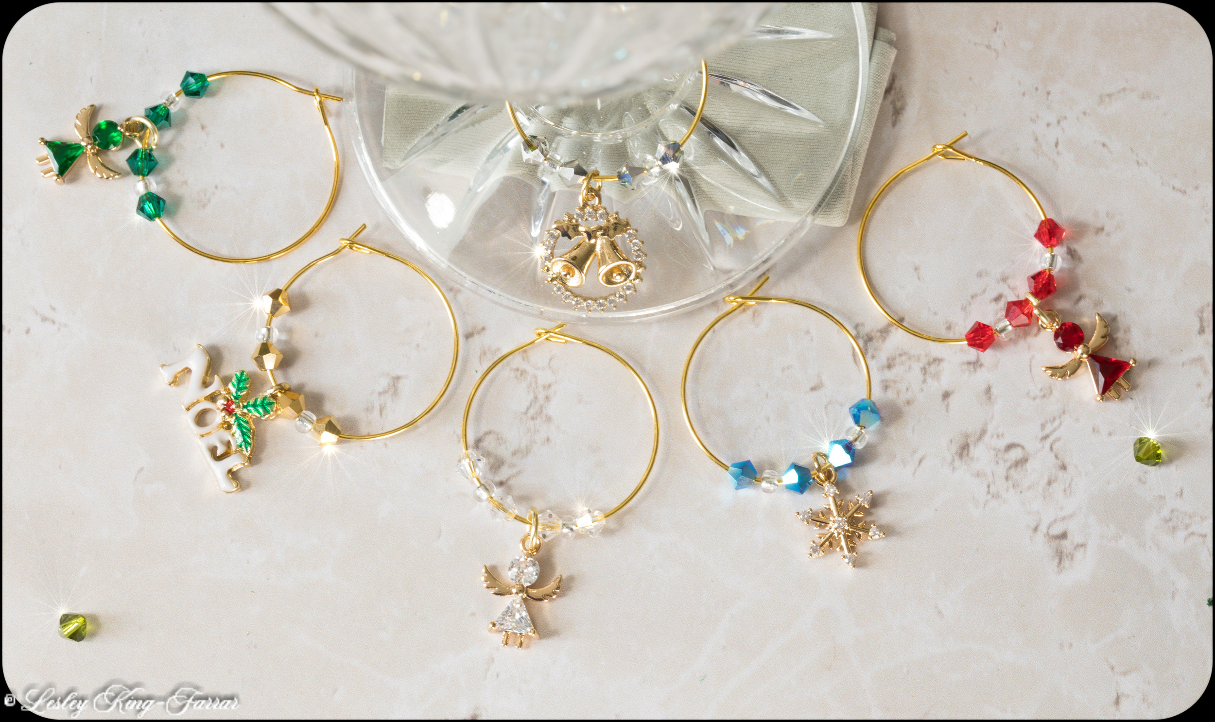 Grace your Christmas Table with this lovely set, three colourful Angel Charms with three individual Christmas theme Charms will help you easily identify whose glass is whose, as well as looking beautiful, finished with multicolour Preciosa® Crystals.