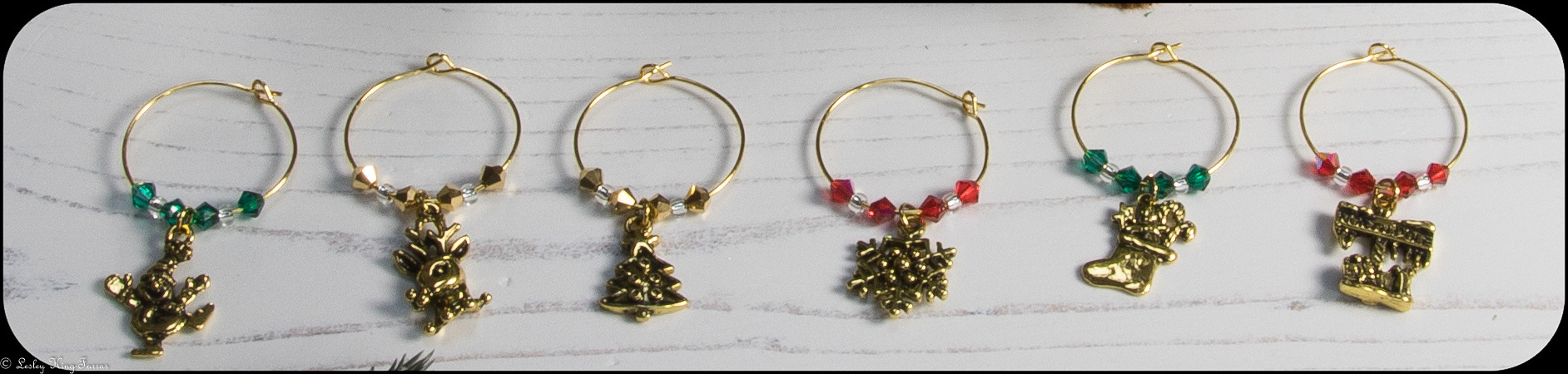 Pretty Christmassy Wine Glass Charms with sparkling Preciosa Crystals