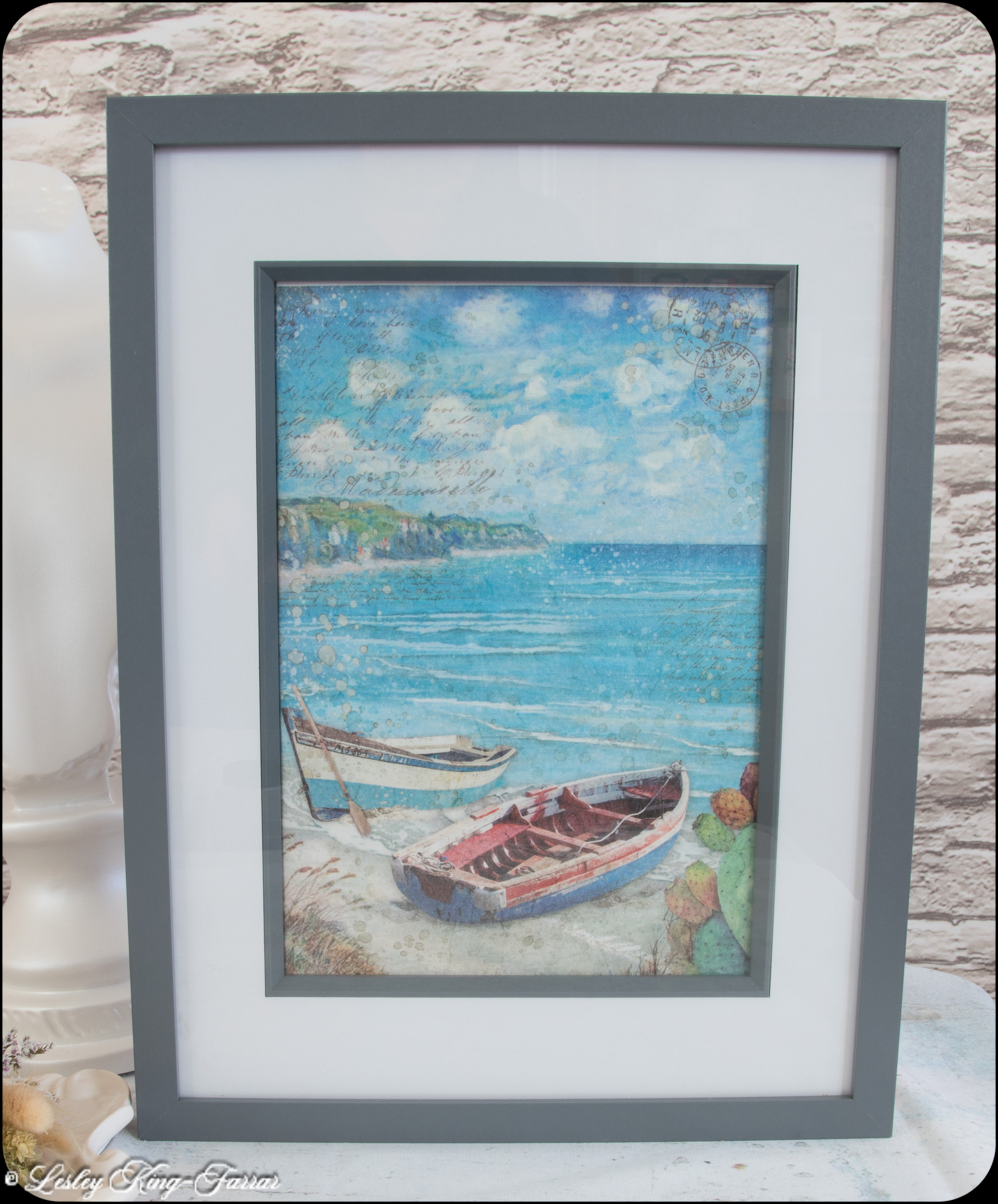 Handmade Decoupage Rowing Boats on Shore Wall Art - Grey Frame