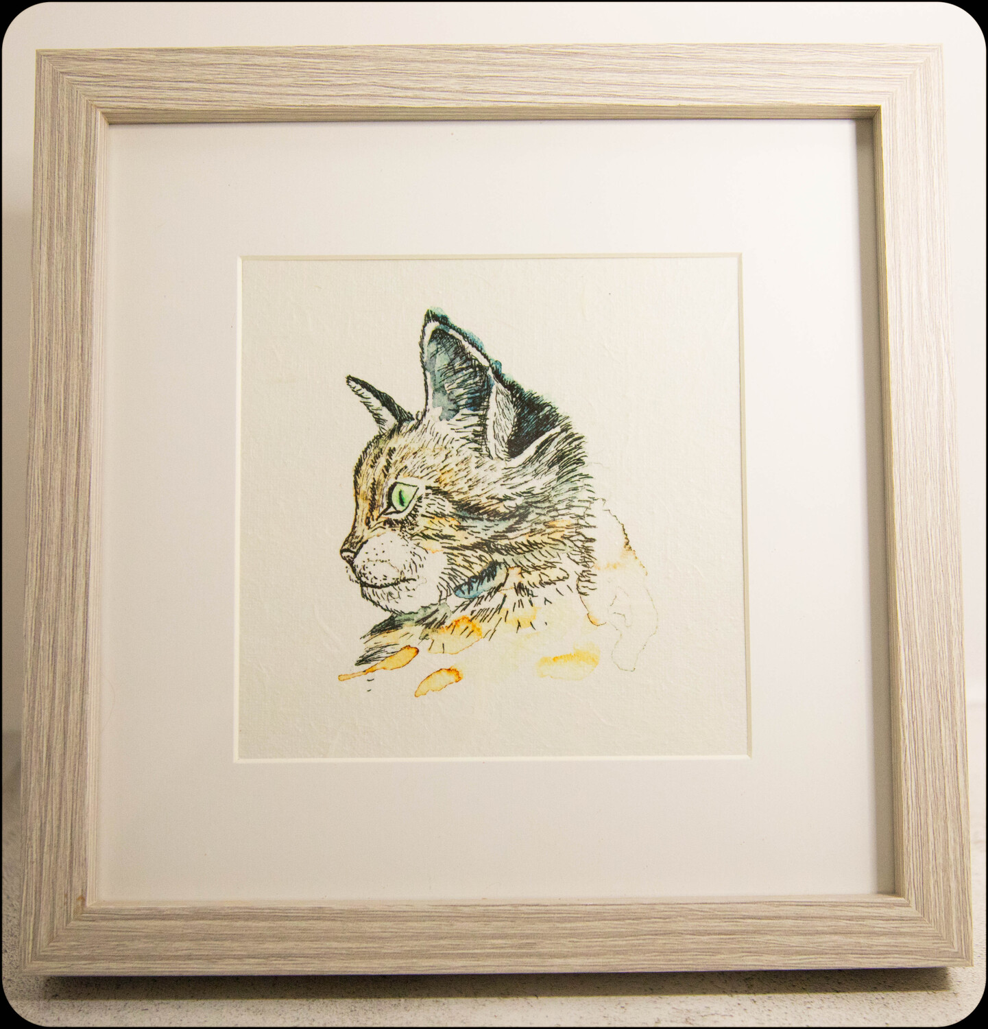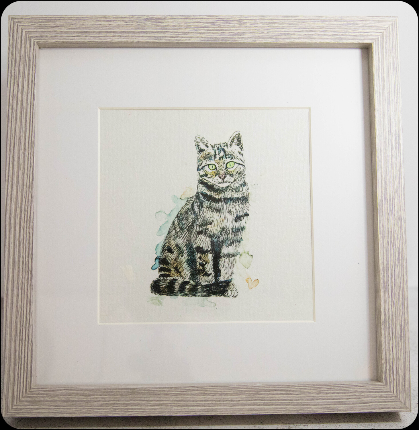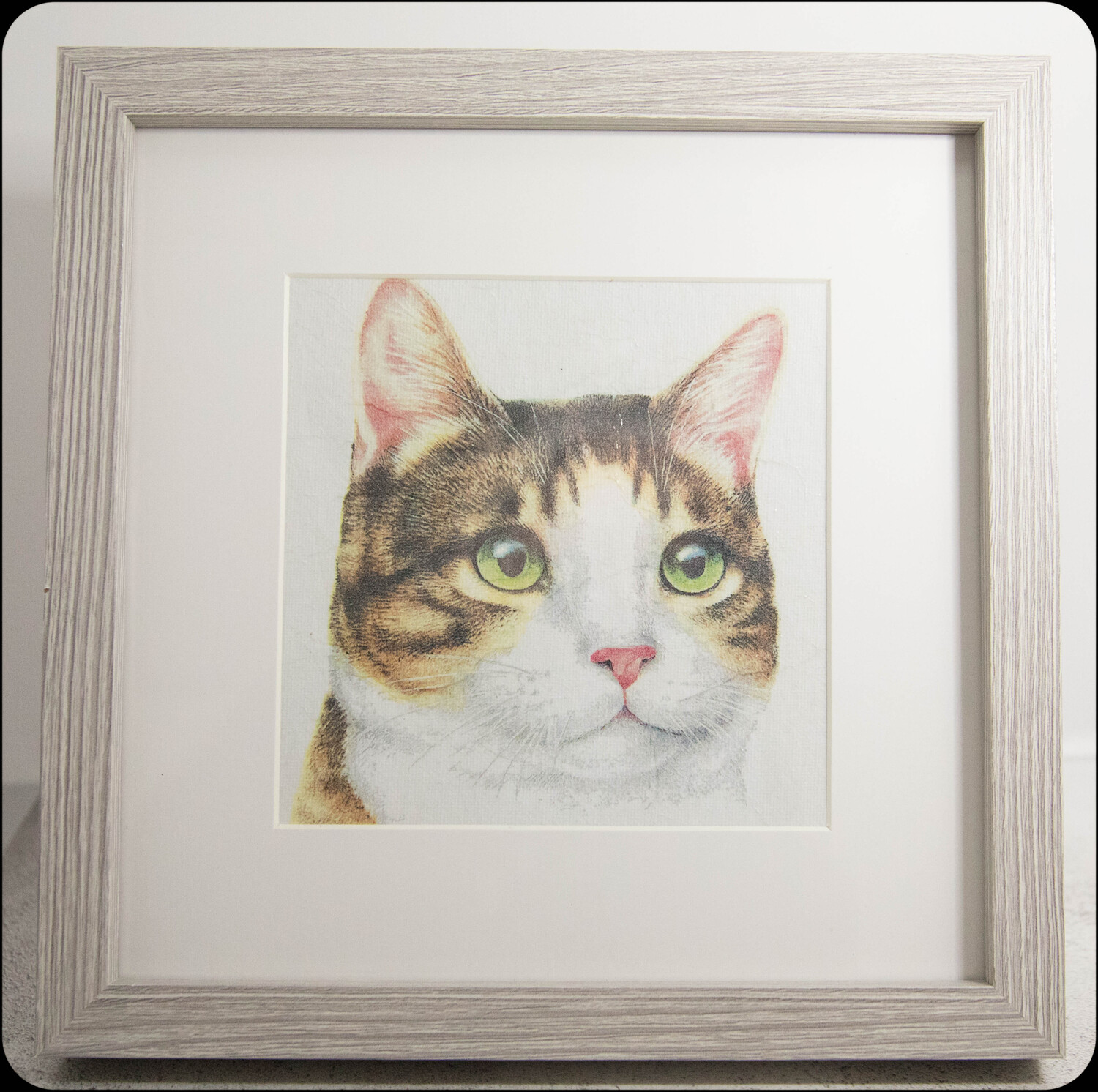 Pretty little Decoupage on Canvas Tabby Cat, This picture can be hung or free standing