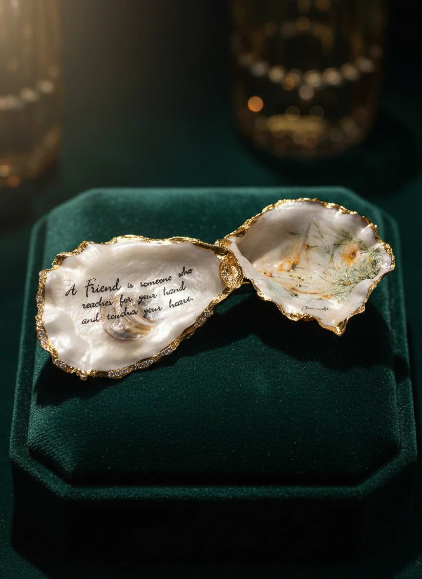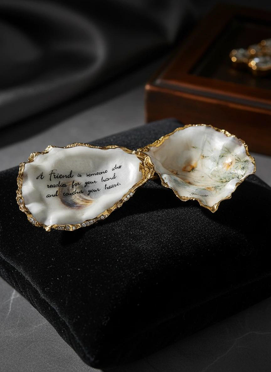 Delicate, meaningful, and beautifully handcrafted, this oyster shell keepsake box is a celebration of friendship and natural elegance. Formed from a genuine oyster shell, each piece is entirely unique, with its own organic shape, curves, and subtle textures.