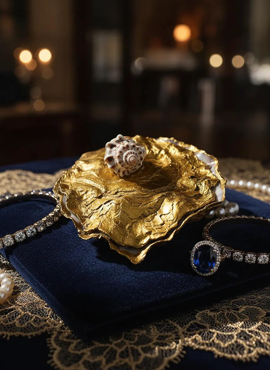 The shell is carefully hand-painted in a soft gold finish, enhancing its natural contours while adding a refined, luminous quality. A small natural shell is attached to the lid, acting as a decorative handle and adding an extra touch of coastal character. The entire piece is fully lacquered, ensuring durability while giving it a smooth, elegant sheen.