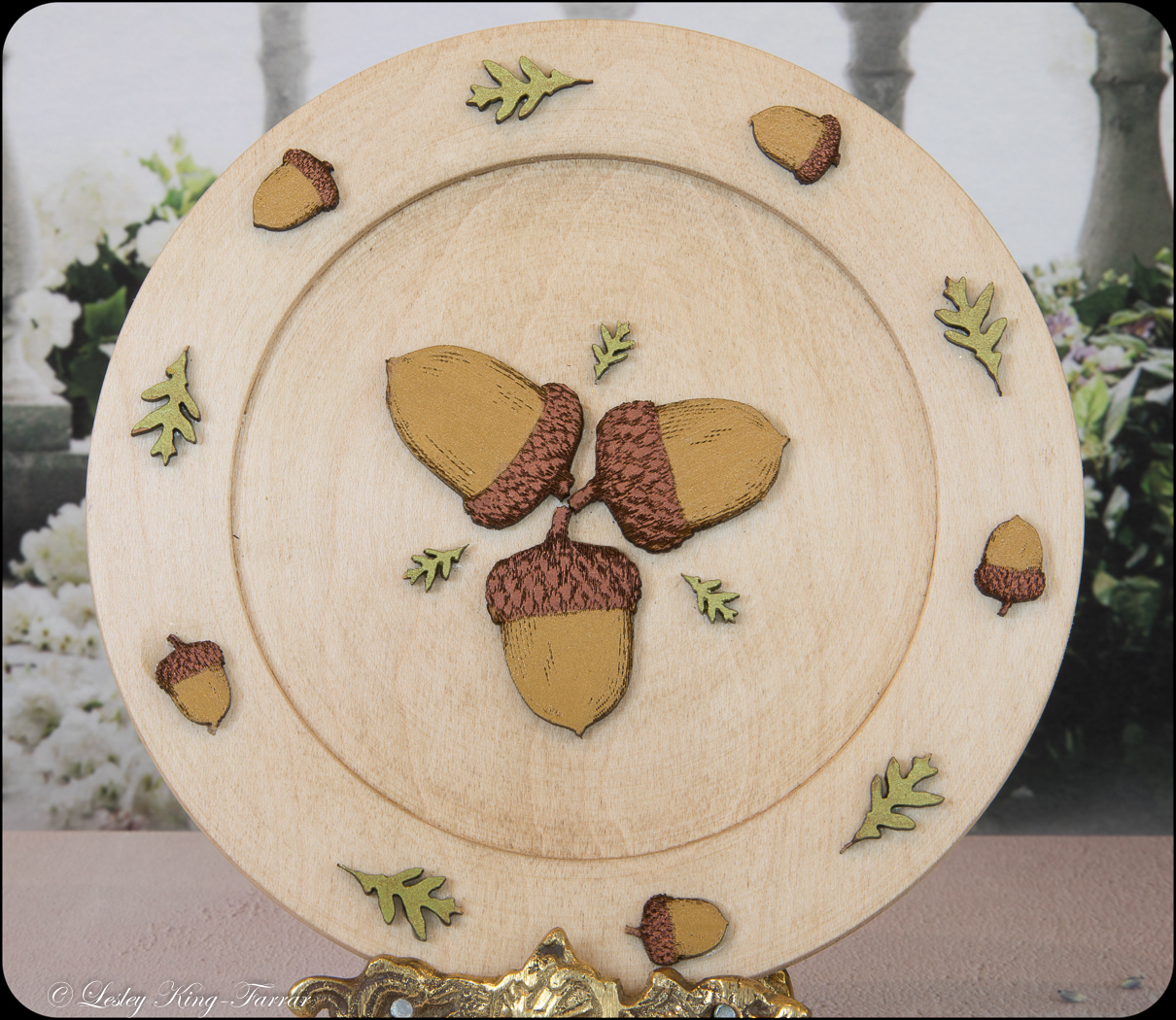 Polished Sycamore wood change plate decorated with lovely hand painted Acorns and Oak leaves