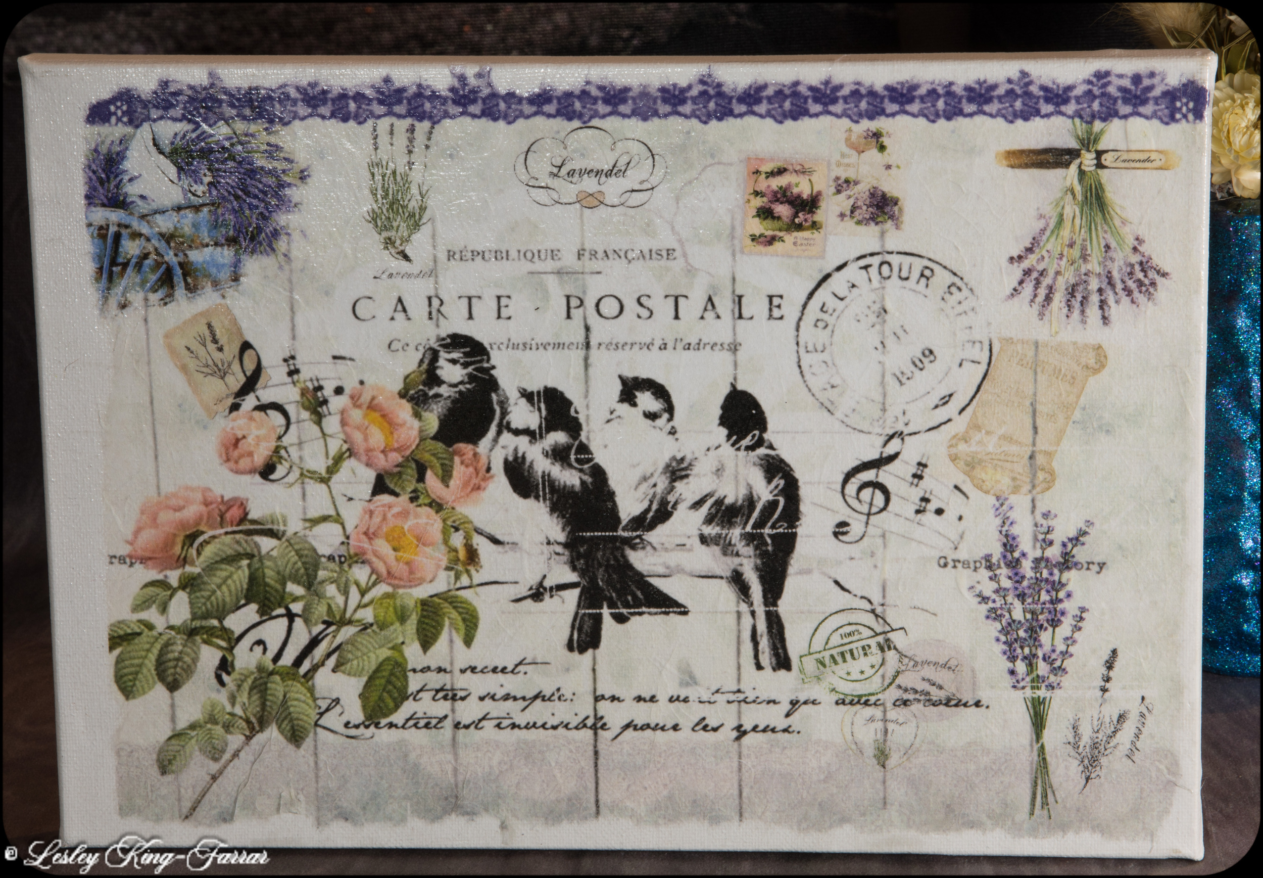 Delightful 'Carte Postale' picture, decoupaged onto Stretched Canvas and ready to frame or it can be hung as it is directly on the wall