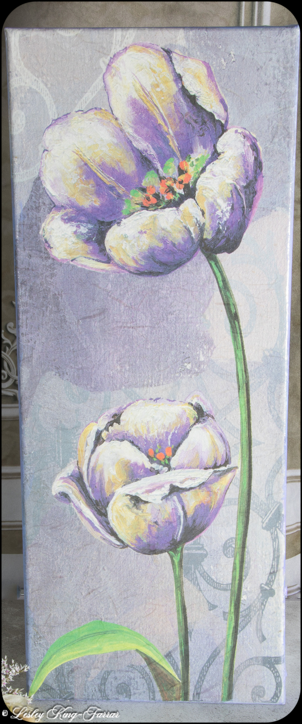 This picture is tall and slender just like the lovely Tulips decoupaged onto the stretched canvas frame. This picture can either be framed or hung just as it is