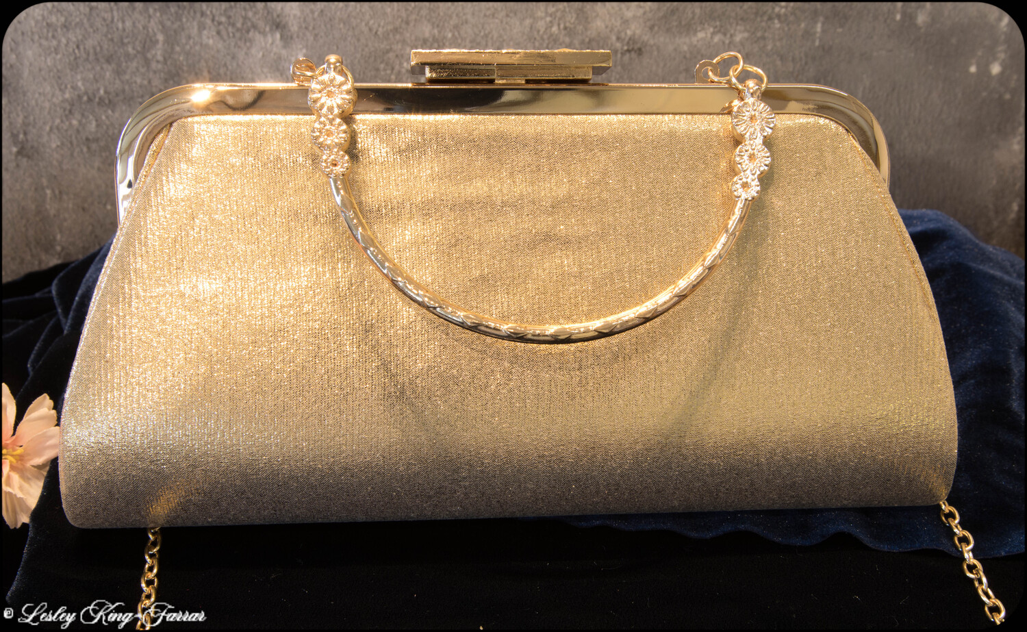 Comes with chain shoulder strap and small half moon solid handle for easy carrying.