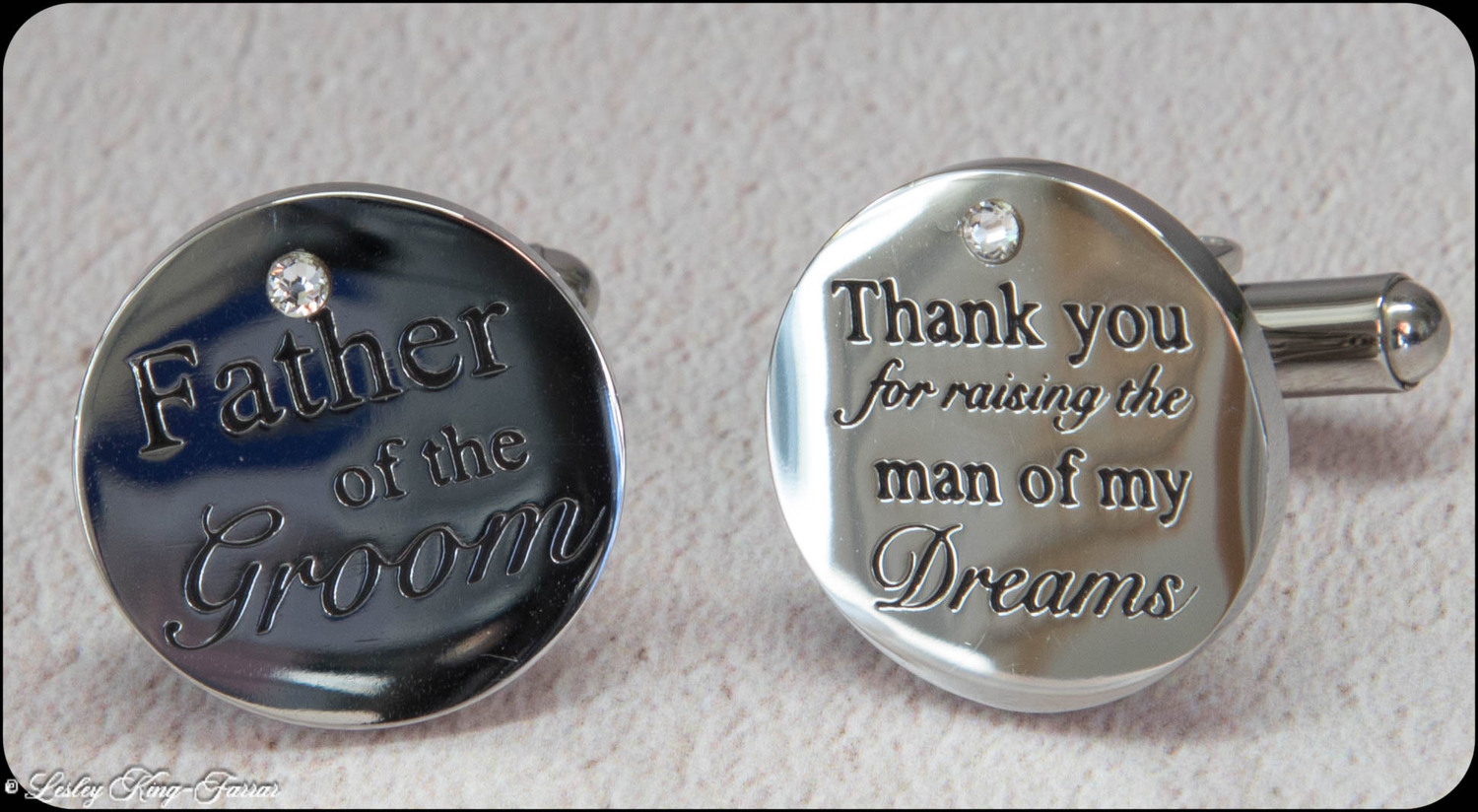 Sentimental Style – One cufflink engraved “Father of the Groom” and the other with “Thank you for raising the man of my dreams.”