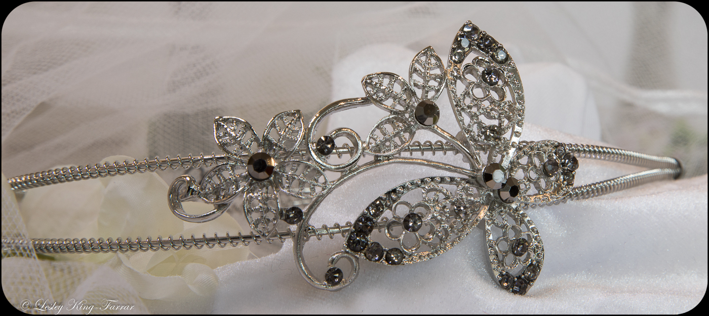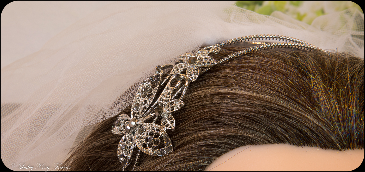 Suitable for Bride,Bridesmaid, Mother of the Bride or Groom this beautiful and unusual Butterfly Alice Band has been decorated with black and haematite crystal stones. Set on a silver coloured band measuring 1.5cm wide at widest point the Butterfly measures approx 4.5cm x 7cm