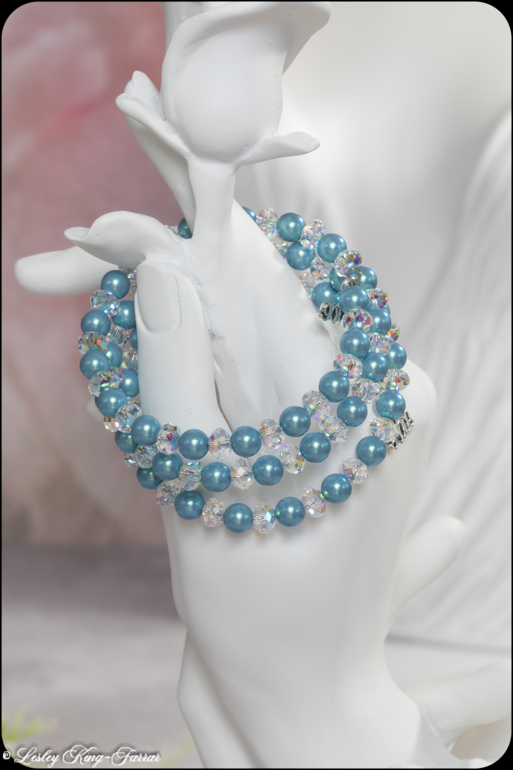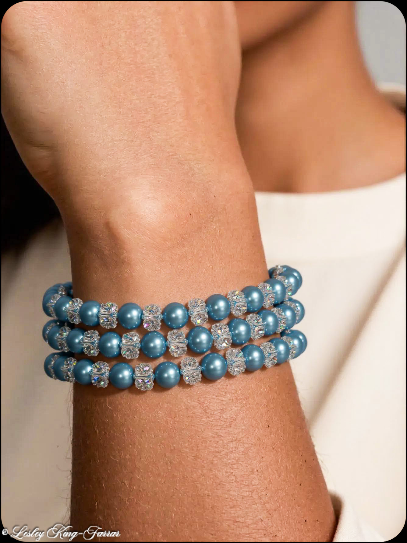 Elevate your jewellery collection with this stunning memory wire crystal pearl bracelet, accented with dazzling Aurora Borealis glass crystals that shimmer with every movement. The bracelet’s flexible memory wire design ensures a comfortable fit for any wrist, while the combination of lustrous crystal pearls and iridescent AB crystals creates a timeless yet modern look.