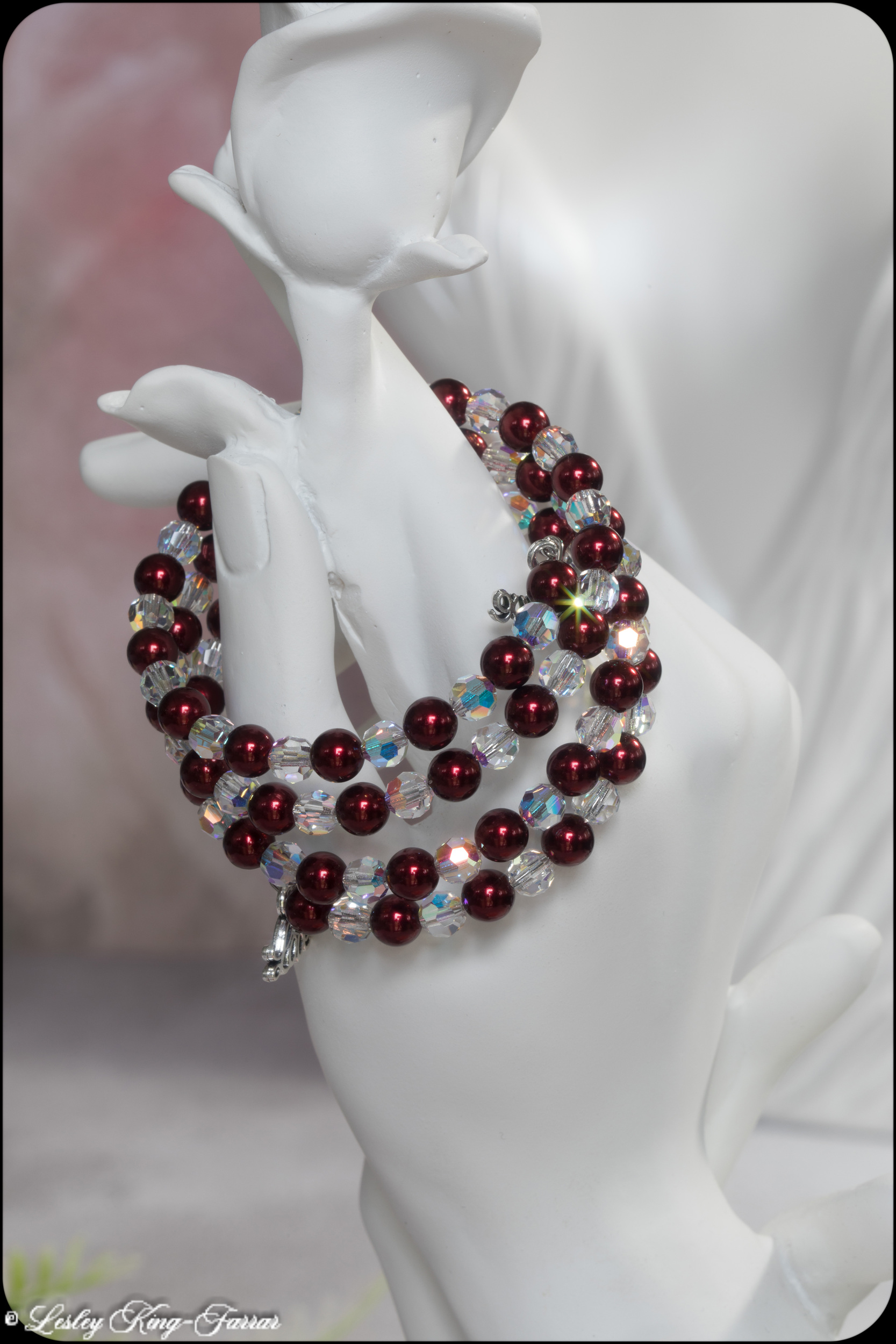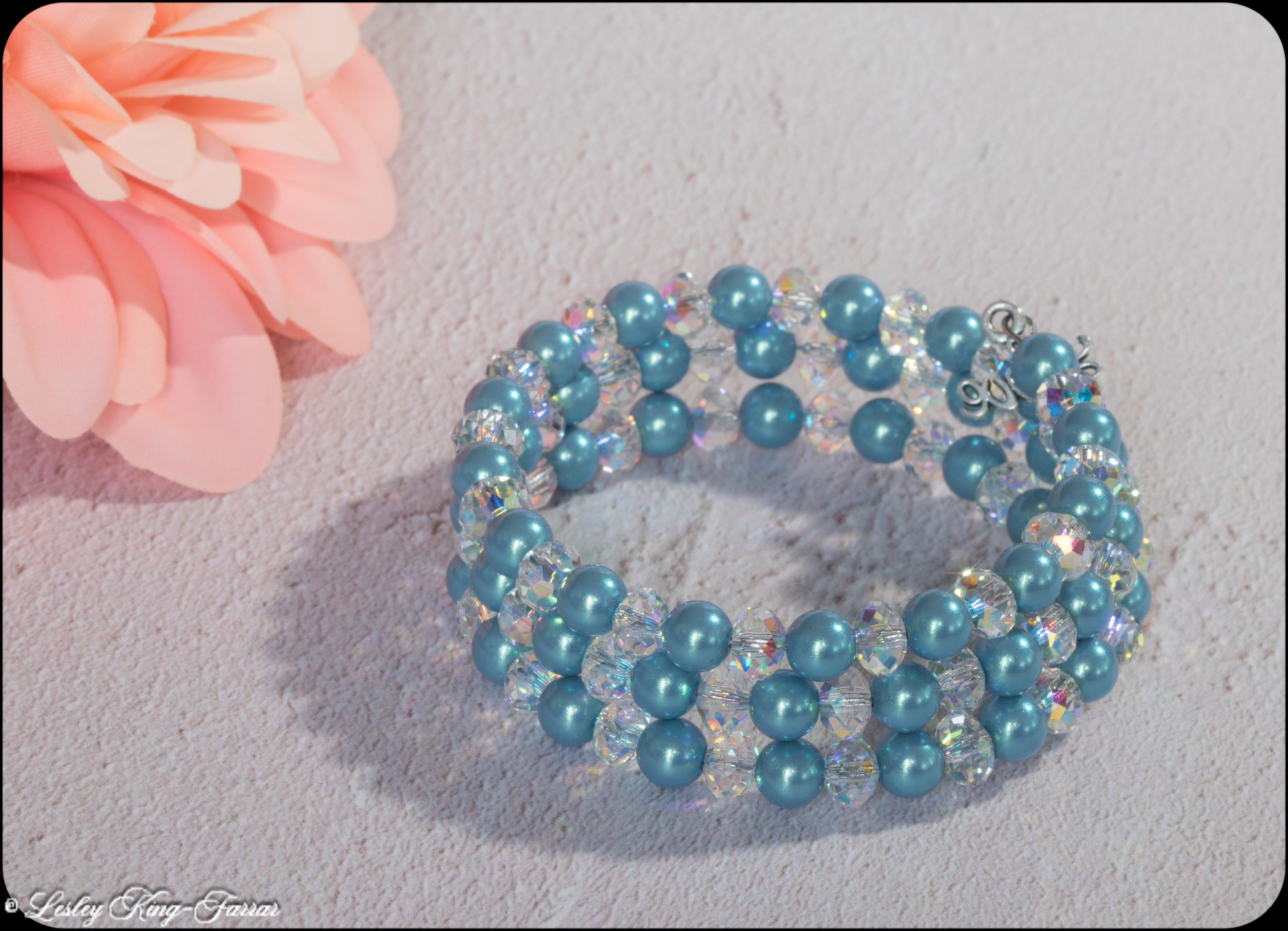 Memory Wire Bracelet with Crystal Pearls & Aurora Borealis Crystals