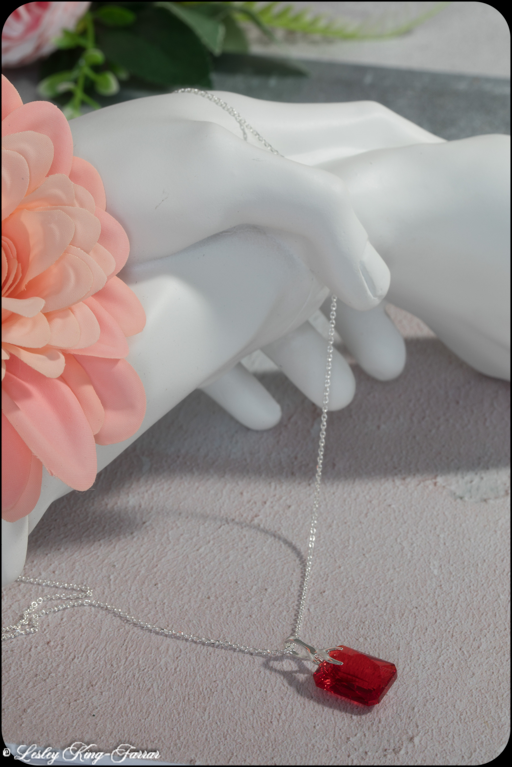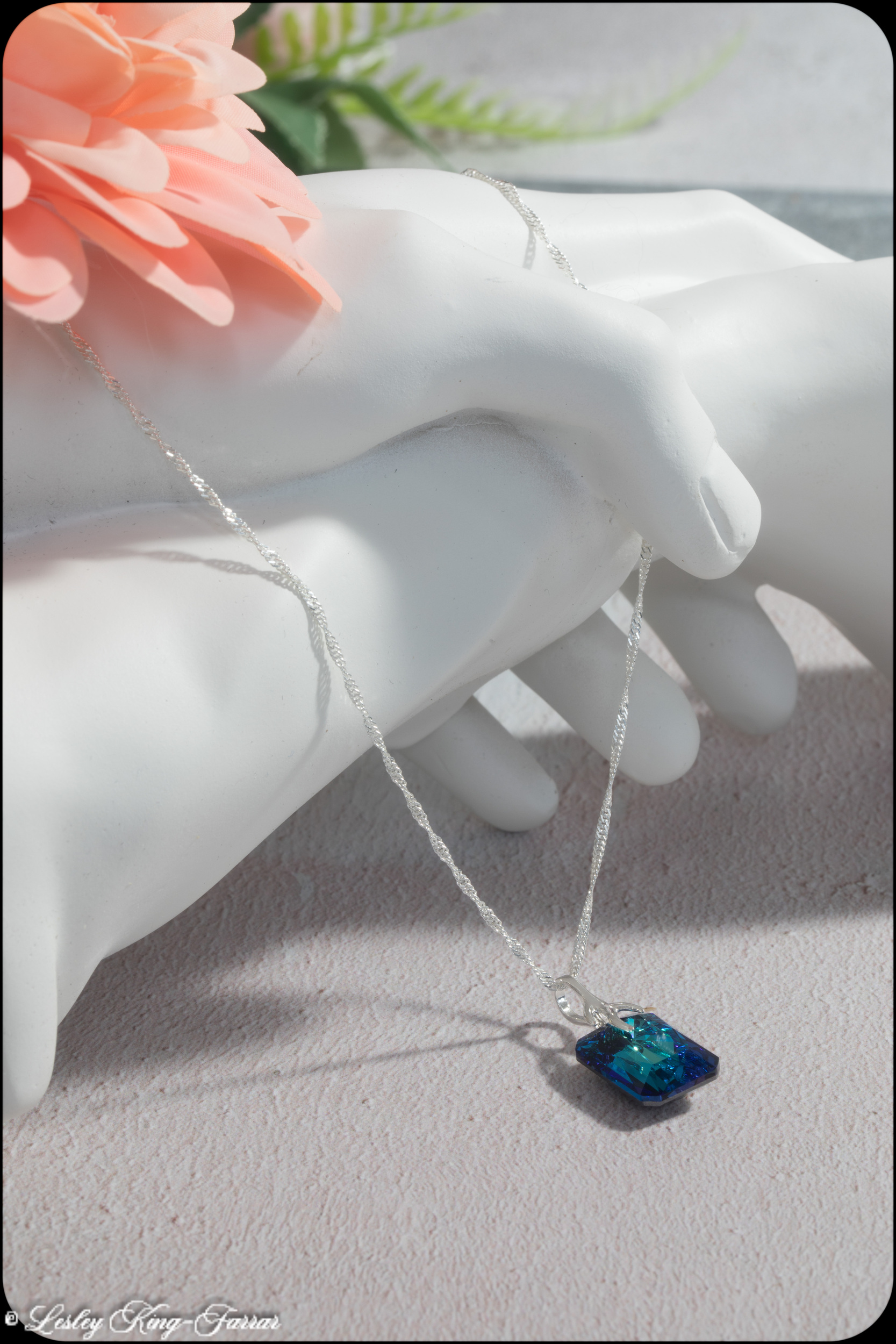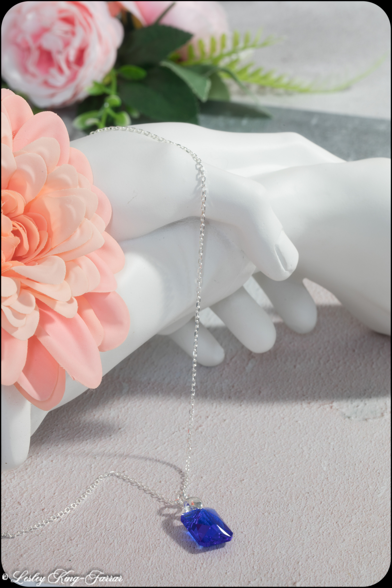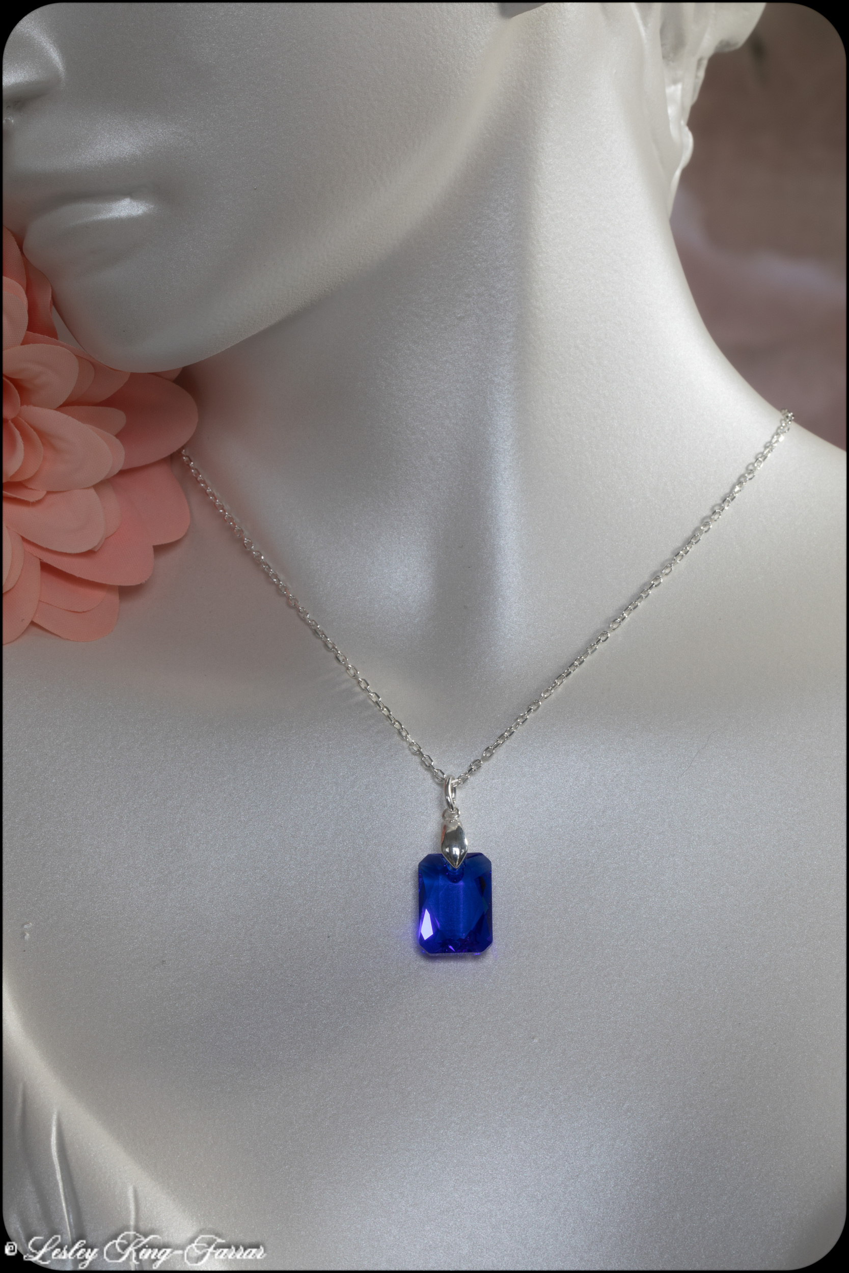Oblong Crystal Necklace – Majestic Blue, Siam Red, Vitrail Light