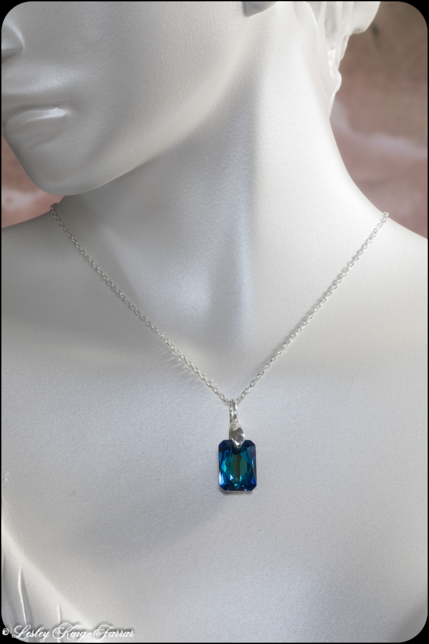 The sleek 16mm oblong shape offers a modern, minimalist aesthetic, enhanced by a high-quality sterling silver bail and suspended on a classic 18-inch sterling silver chain. Whether you're drawn to the deep royal hue of Majestic Blue, the rich vibrance of Siam Red, or the multi-tonal magic of Vitrail Light, each color adds its own unique energy and style.