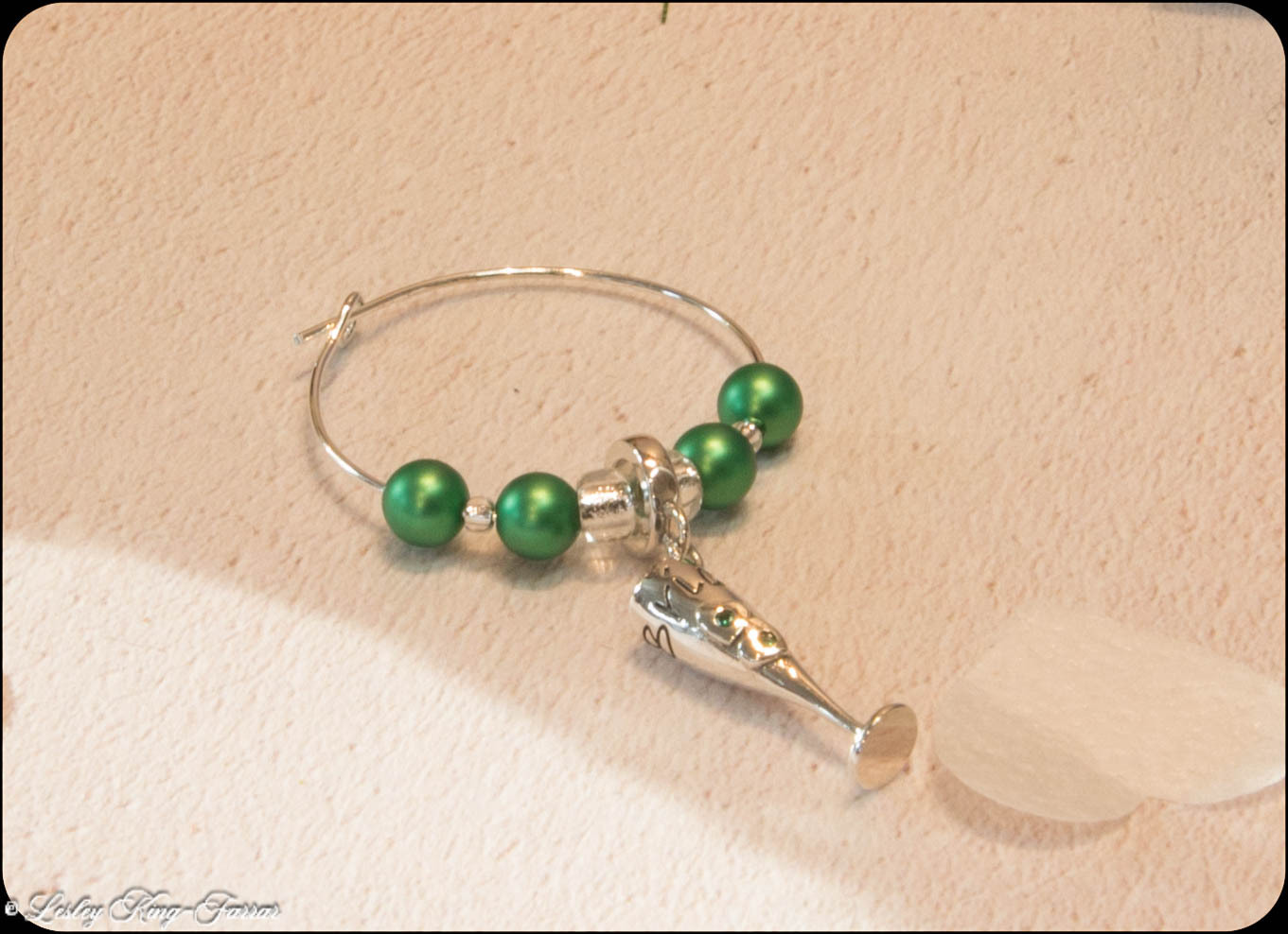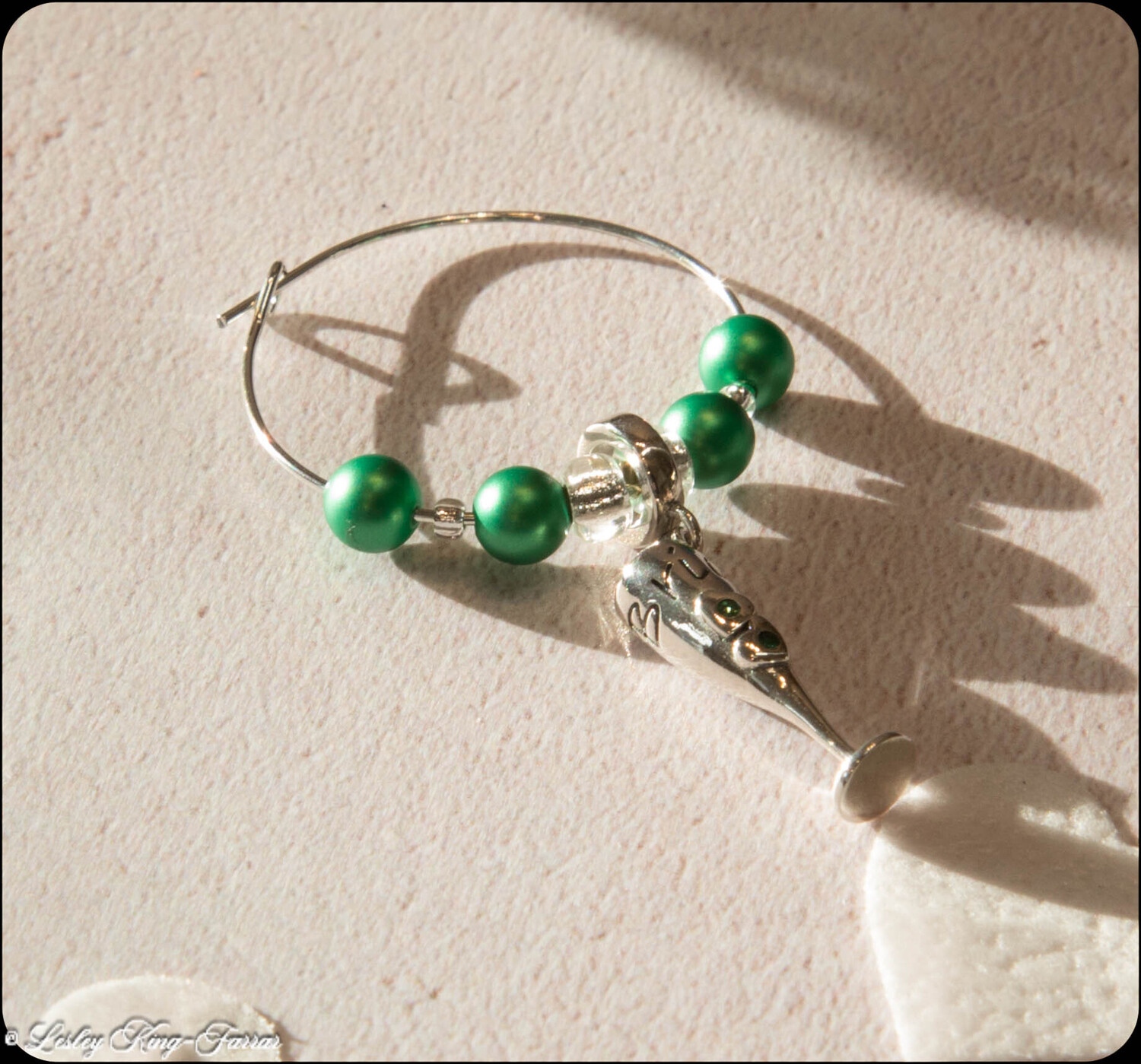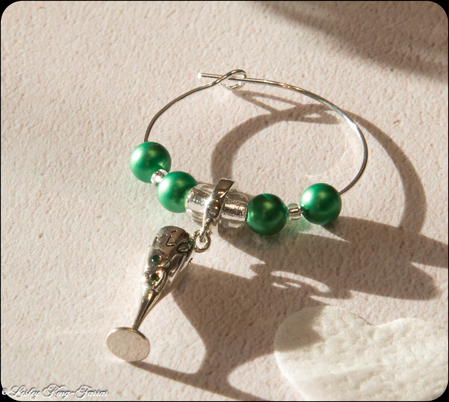 This super Sterling Silver Champagne Bottle Charm swings from a silver plated wine glass ring threaded with crystals from Swarovski© The Charm can easily be removed and placed directly onto a Charm Bracelet