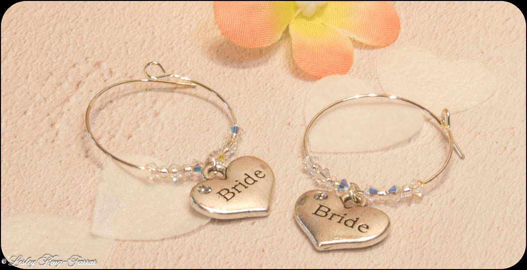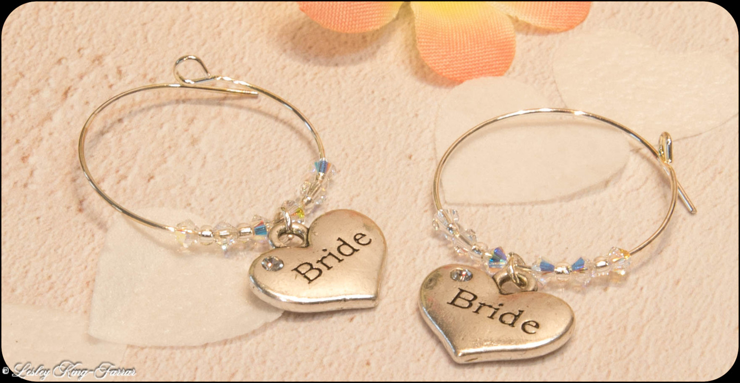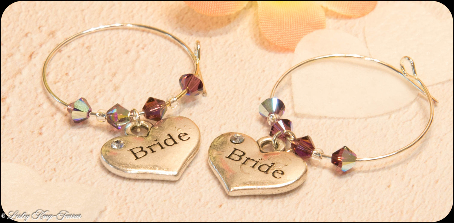 Bride & Bride Wine Glass charms surrounded with sparkling crystals.